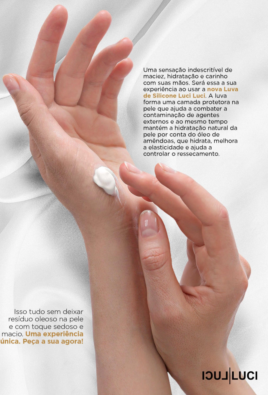 Ideal até para a pele seca e extra seca, a Luva de Silicone hidrata também suas unhas e cutículas, deixando suas mãos bonitas por completo.